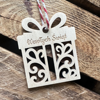 Bombka Drewniana z Logo Firmy na Choinkę Święta Ażurowa Prezent dla Kontrahenta z Grawerem + Wstążka