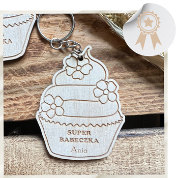 Drewniany Breloczek na Dzień Kobiet z Imieniem do Szkoły / Pracy Brelok Super Babeczka