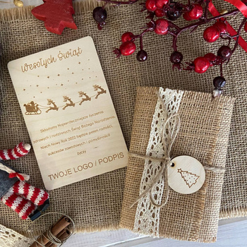 Kartka Świąteczna Drewniana z Logo Prezent na Święta
