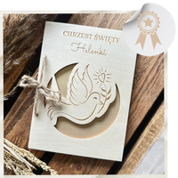 Drewniana Kartka na Chrzest Personalizowana Grawer Pamiątka Chrztu Świętego