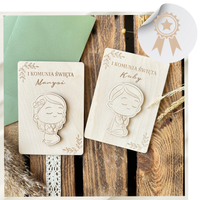 Pamiątka Pierwszej Komunii Świętej Kartka na Komunię Drewniana z Grawerem