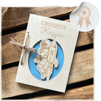 Drewniana Kartka na 1 2 3 4 5 6 7 Urodziny Astronauta Kartka na Roczek dla Chłopca