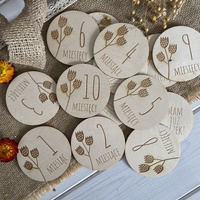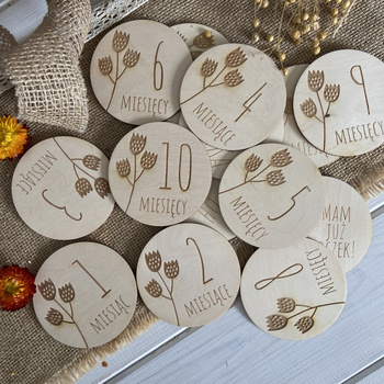 Drewniane tabliczki z Miesiącami do Zdjęć Dziecka Karty Pierwszy Rok Życia 14 sztuk