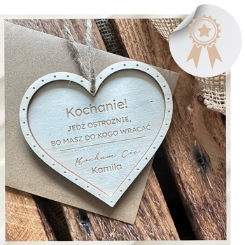 Drewniana Zawieszka Do Samochodu Kochanie Jedz Ostrożnie Serce Grawer Mąż